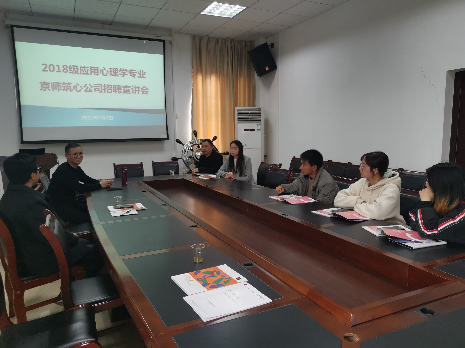 为积极推动落实应用心理学专业本科生的就业工作,切实减轻员工就业压力,应用心理学教研室于3月2日下午邀请京师筑心重庆公司罗宋成总经理等一行三人在公司会议室召开应用心理学2022届本科生毕业生招聘宣讲会,教研室负责人朱千教授、刘志军教授以及应用心理学专业部分本科生参加了会议。