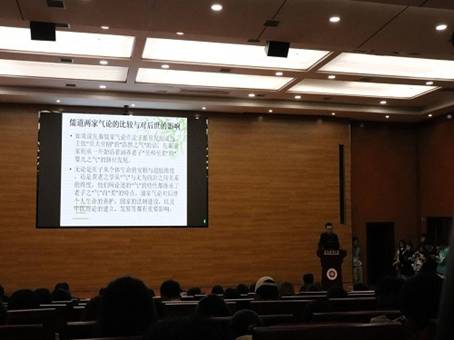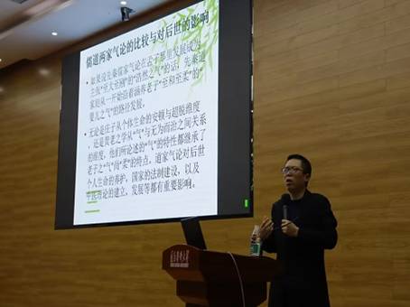 魏来教授首先向积极参加本次讲座的老师及同学表示感谢,并向大家介绍了本次讲座的主讲嘉宾李刚博士的研究领域,希望同学能认真地与李刚博士一起遨游人文海洋,探索“气”的思想。接着,主讲人李刚博士从“气”字型的演变、气与生命、甲骨文中的“气”、《老子》中的柔和之“气”、《庄子》的通天下一气、孔子的“气志”论、孟子的“气志”论、儒道两家气论的比较与对后世的影响等方面向大家介绍了“气”的思想及其发展。此外,李刚博士还为大家详细解读了“气”在老子宇宙论中的地位、《老子》之“气”的特性、《老子》之“气”的涵养方法、《老子》之“气”的作用、《老子》气学思想的影响等内容,带领大家深入理解了老子思想的精神内涵。在讲座尾声,魏来副经理对本次讲座进行了总结,他强调“气”的思想及其发展是从“节气”到“气节”的过程,希望同学们都做有浩然正气的人。