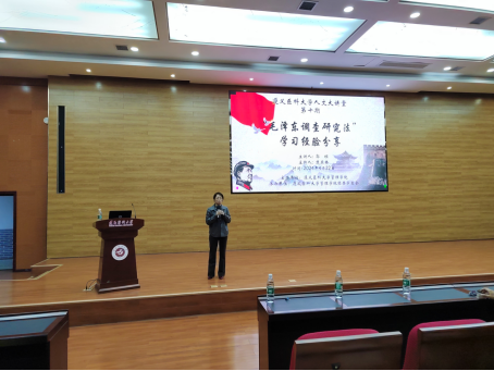 楚亚林副教授首先向出席本次讲座的老师及同学表示感谢,并向大家介绍了本次讲座的主讲嘉宾郭坦博士的研究领域及意义,希望同学们能从本次讲座中有所收获。接着,主讲人郭坦博士从调查起源、毛泽东调查研究的方法、调查研究成果运用这三个部分详细论述了调查研究。郭坦博士从自身的经历出发,向同学们展示了自己调研时曾发出的问卷“全科医员工问卷调查”,引发同学对调查研究的思考,紧接着郭坦博士详细讲述了毛泽东的调查研究方法,并向大家展示了相关书籍。最后,郭坦教授对本次讲座进行了简要总结,希望每个同学都可以通过对调查研究的了解促进自己的学习与科研。