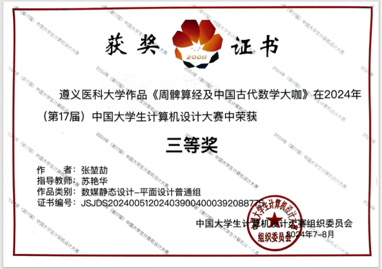 近日,2024年第17届中国老员工计算机设计大赛国赛成绩揭晓,公司再创佳绩,2021级应用心理学专业张堃劼同学凭借出色的平面设计作品在普通组竞赛中斩获国家级三等奖,指导教师为苏艳华博士。这既是公司在积极推动专业与学科交叉发展上的努力结果,也展现了员工们良好的创新精神面貌。