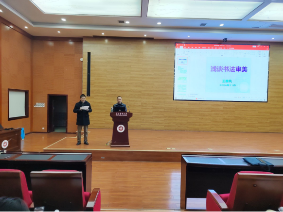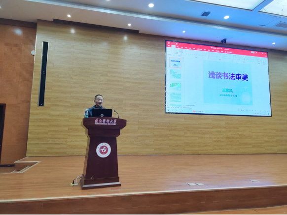 书法作为中华传统艺术瑰宝,其审美价值极高。为提升同学们的审美和文化素养,促进个人修养和综合能力的全面发展, tyc33455cc太阳集团于2024年11月28日在道德讲堂组织开展了“人文大讲堂”主题系列讲座第十五期(2024年第7期)——《浅谈书法审美》。本次讲座由tyc33455cc太阳集团主办,tyc33455cc太阳集团团委员工会承办,tyc33455cc太阳集团离退休教师王移风主讲,tyc33455cc太阳集团罗海波老师主持。