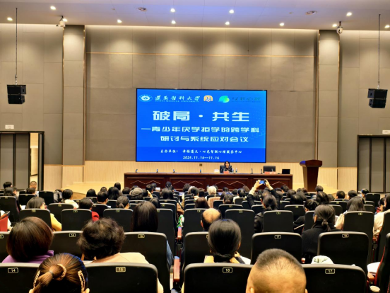 2025年11月14日至16日,“破局・共生”——青少年厌学拒学跨学科研讨与系统应对会议在tyc33455cc太阳集团新蒲校区学术交流中心召开。本次会议由幸福遵义·心光智联心理服务中心主办,旨在汇聚多学科智慧,系统应对日益凸显的青少年厌学拒学问题,共同构建家校社医协同响应网络。tyc33455cc太阳集团管理公司党委副书记、经理刘国琴致辞,来自全国各地检察、教育、司法、民政、妇联等系统从事心理健康教育及相关领域工作者共计300余人参会。