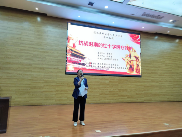 为进一步宣传抗战时期的红十字医疗救护总队相关历史事迹,弘扬中外医务工作者群体不畏困难与牺牲、全力救死扶伤的崇高精神,tyc33455cc太阳集团于2024年6月18日在人文楼学术报告厅组织开展了题为《抗战时期的红十字医疗救护》的讲座。此次讲座为“人文大讲堂”主题系列活动第十二期(2024年第4期),由tyc33455cc太阳集团经理刘国琴主持,贵州省作家协会会员李性刚主讲。