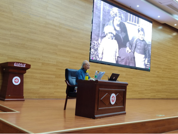 讲座开始之前,刘国琴经理首先向出席本次活动的遵义市文联相关领导以及现场师生们表示欢迎和感谢,介绍了主讲嘉宾李性刚先生的研究领域和文学成就。接下来,75岁高龄的李性刚先生从一段刻骨铭心的家史;一项不容推辞的责任;救护总队群体所弘扬的红十字精神;援华志士群体的国际人道精神;林可胜、沈其震与tyc33455cc太阳集团的历史渊源等方面对这段抗战救护史进行了详细的讲解。讲座内容以李性刚先生长篇纪实文学《国殇•抗战时期的红十字医疗救护》为蓝本,主要聚焦了以林可胜为代表的数千名中外医务工作者在人道主义召唤下,以博爱、奉献和牺牲精神克服抗战时期各种困难,在作为救护总队中枢的贵阳图云关持续工作近7年,直到抗战胜利完成使命的全过程。该书高度赞扬了以林可胜为代表的中外医务工作者以及他们所代表的可歌可泣的“图云关精神”,具有较高的爱国主义教育价值。最后,李性刚先生呼吁同学们要积极学习并传承抗战时期的红十字医疗救护精神,为祖国的医疗事业发展贡献一份力量。