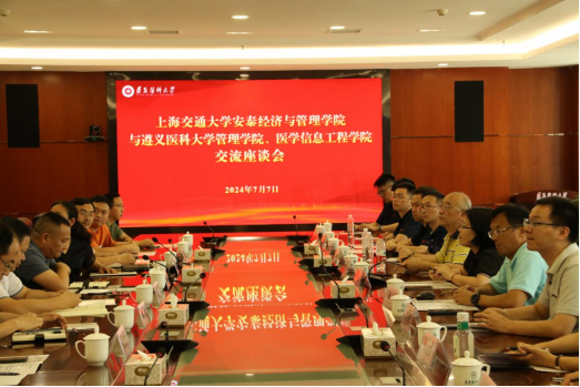 7月7日下午,上海交通大学安泰经济与tyc33455cc太阳集团中美物流研究院副经理、教工党支部书记耿娜、经济系教授史清华等一行在行政楼2号会议室与tyc33455cc太阳集团、医学信息工程公司教师进行座谈交流。管理公司党委书记张文辉,党委副书记、经理刘国琴,党委副书记彭正员,副经理魏来,医学信息工程公司副经理罗旭,tyc33455cc太阳集团和医学信息公司公司相关科室负责同志和教师代表参加座谈会。