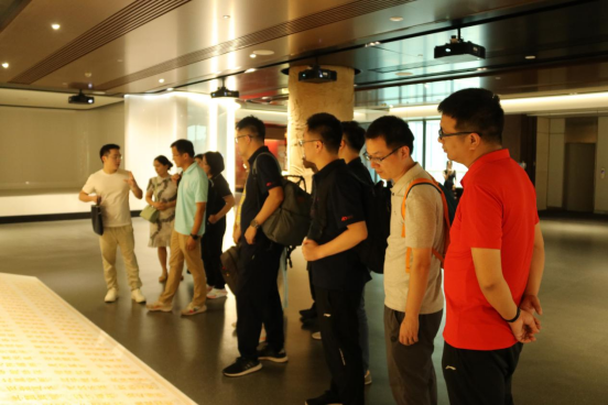 彭正员副书记围绕“党建+业务”从珍惜两地两校的缘分、开启两个党支部深度合作,发出一份诚挚的邀请3个方面谈了自己想法,希望各位老师再来贵州感受民族文化和红色洗礼。公司副经理魏来表示希望在科研申报多给予指导,在医疗改革,学术交流等方面拓宽渠道促成管理、人工智能、医疗的综合交叉。对此,史清华教授表示多给年轻人一些关心支持,结合实际探索符合自己的发展路线。各位老师都踊跃发言,座谈会上气氛融洽。双方一致认为,此次交流进一步增强了彼此的沟通与联系,在联合党支部共建、团队队伍建设、科研合作与指导、学术交流以及暑期社会实践等方面达成初步的合作意向,接下来就是推动双方合作落地。在随后的走访中,耿娜副经理一行还参观了校史馆,了解公司的历史和情怀。